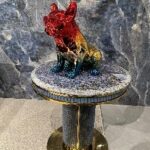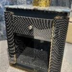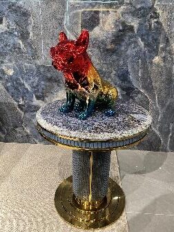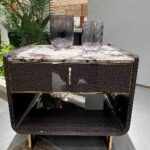 Crafted with a sturdy metal frame paired with a premium natural stone top, enhanced by an elegant Victoria blue crocodile-texture finish.