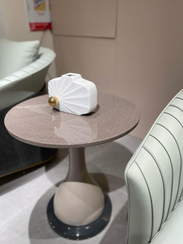 - Modern side table finished in an elegant golden thread grey tone.