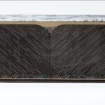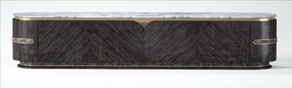 - Modern TV cabinet designed with a luxurious dark brown ebony pattern.